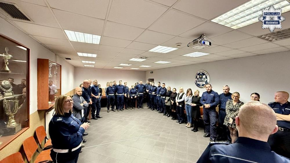 Uroczystość rozpoczął Komendant Miejski Policji w Mysłowicach insp. Dariusz Fuks, który podziękował funkcjonariuszce za zaangażowanie, profesjonalizm i lata pracy na rzecz bezpieczeństwa mieszkańców.