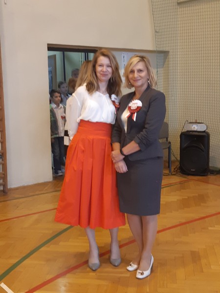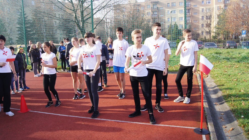 Wreszcie 9 listopada – nie odbyła się żadna uroczysta akademia, nie było zbytniego patosu, za to (jak na urodziny przystało) było hucznie i radośnie. Na początek mocny akcent – „Polonez na 100 par!”. Widowiskowo zaprezentowało się dwustu uczniów w ogromnym korowodzie na dużej sali gimnastycznej. Później oczywiście tort, a właściwie 10 tortów ze stoma świeczkami i gromkie „Sto lat!” w wykonaniu przedstawicieli klas VII, VIII i gimnazjalnych, wychowawców oraz Dyrekcji. Oczywiście nie mogło obyć się bez prezentów – klasy podarowały Niepodległej m.in. obraz, laurki, występy z pieśniami patriotycznymi, ale i scenki kabaretowe czy recytacje wierszy. Z kolei dla klas IV-VI odbył się turniej „Kochamy Cię, Polsko!”, a maluchy z klas I-III przygotowywały chorągiewki i godła państwowe. O 10.45 wszyscy uczestnicy urodzin zebrali się na boiskach szkolnych, aby kibicować uczestnikom „Sztafety Niepodległości”. Jeszcze tylko rozgrzanie gardeł głośnym „Sto lat!” i punkt 11.11 uroczyste odśpiewanie czterech zwrotek „Mazurka Dąbrowskiego”. Zwieńczeniem imprezy było zasadzenie graba, który otrzymał imię „Ignaś” (na cześć Ignacego Jana Paderewskiego).