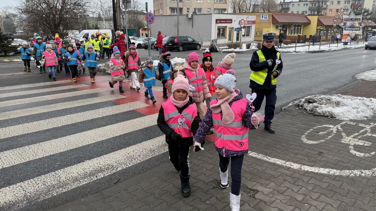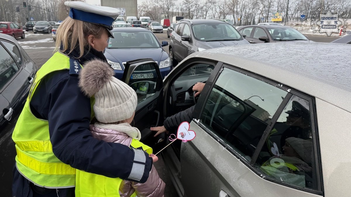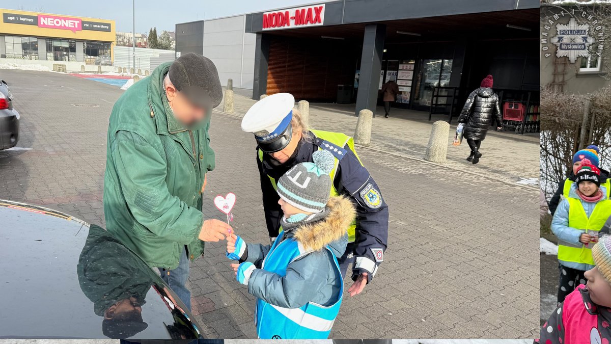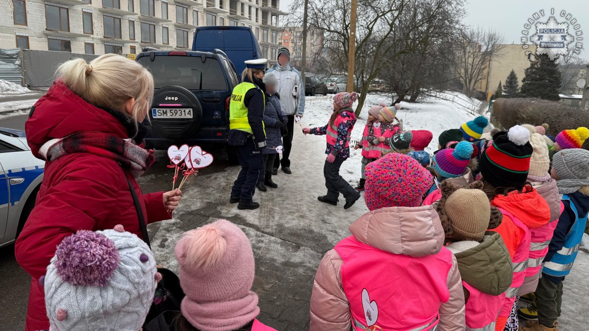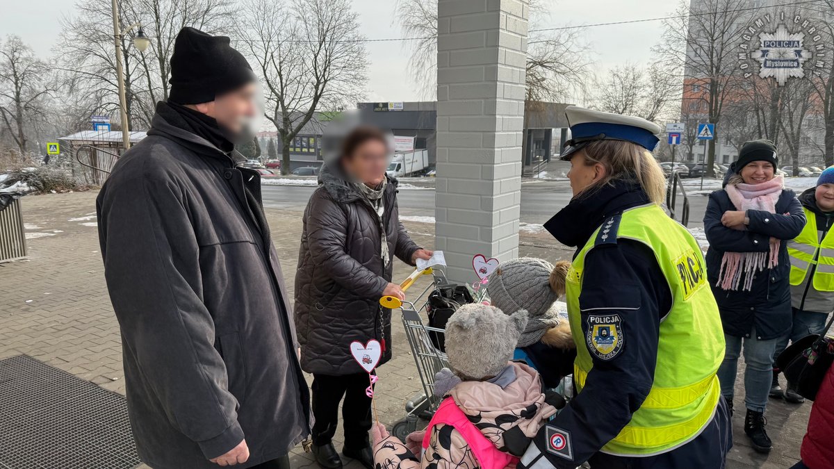 Policjanci z mysłowickiej drogówki zorganizowali dziś akcję wraz z dziećmi ze Szkoły Podstawowej numer 9. W trakcie działań mundurowi przypominali seniorom zasady bezpiecznego uczestnictwa w ruchu drogowym. Dzieci przygotowały dla napotkanych babć i dziadków serduszka, przypominające by być bezpiecznym na drodze.