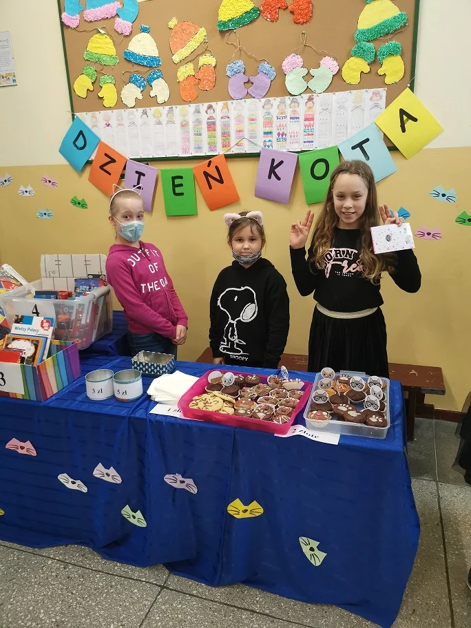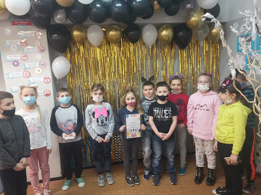 Uczniowie klas 1-3 przygotowali pomysłowe przebrania na ten dzień. Uczestniczyli w prelekcji, która dotyczyła życia i zwyczajów kotów. Poznali między innymi budowę kota oraz ciekawostki z ich życia. Rozwiązywali zagadki obrazkowe i słuchowe. Rozpoznawali także znane bajkowe koty. W trakcie przerw odbywała się loteria fantowa.