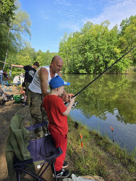 Nie zabrakło również sportowych emocji! Na terenie parku odbyły się zawody wędkarskie dla dzieci, które przyciągnęły małych miłośników łowienia ryb i ich bliskich.