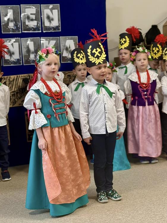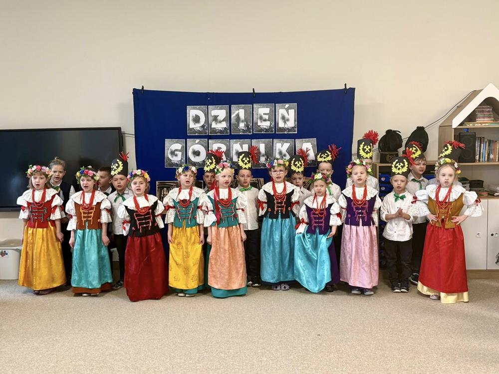 Najmłodsi uczniowie placówki z dużym zaangażowaniem zaprezentowali piosenki, wiersze i układy taneczne o pracy górnika. Występy były okazją, by w przystępny sposób opowiedzieć dzieciom o trudzie pracy pod ziemią, szacunku dla górniczego zawodu i znaczeniu Barbórki na Śląsku.