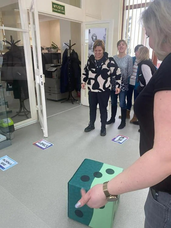 Integralną częścią spotkania była gra ruchowa, w której uczestnicy wcielali się w pionki poruszające się po planszy. Każde pole oznaczało inne zadanie logiczne, co pozwoliło utrwalić omawiane treści w atrakcyjnej formie i zachęcić do współpracy.