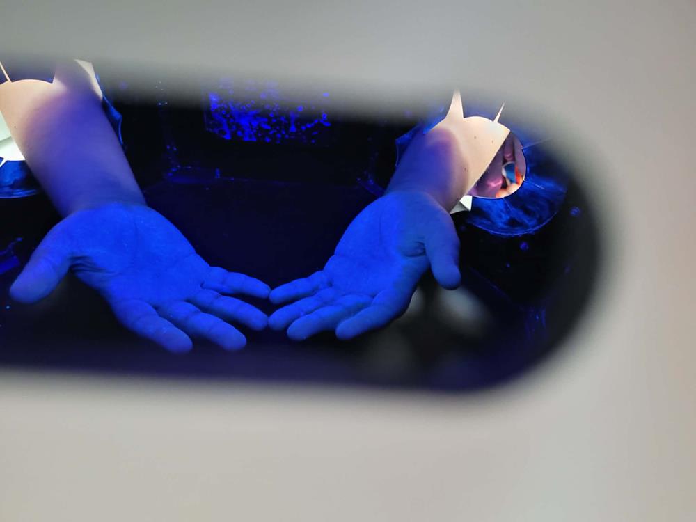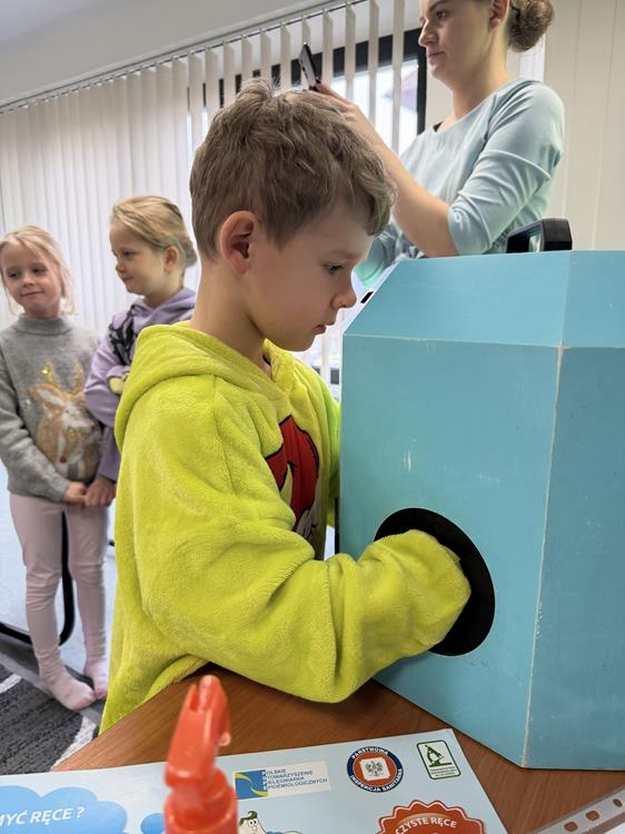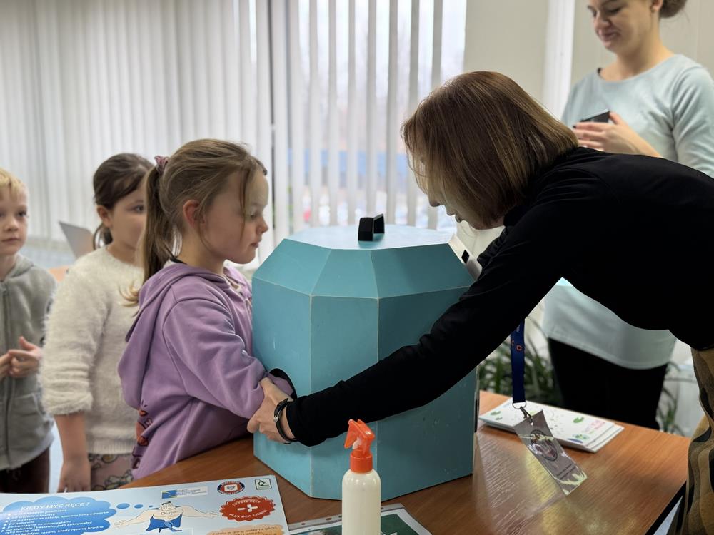 Duży nacisk położono również na odpowiedni ubiór chroniący przed zimnem oraz higienę osobistą. Uczestnicy ćwiczyli prawidłową technikę mycia rąk, a dzięki wykorzystaniu lampy UV mogli sprawdzić, jak dokładnie zostały one umyte. To połączenie teorii z praktyką sprawiło, że zajęcia były nie tylko pouczające, ale też angażujące i łatwe do zapamiętania.