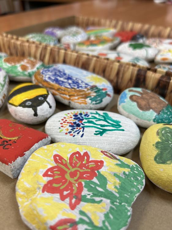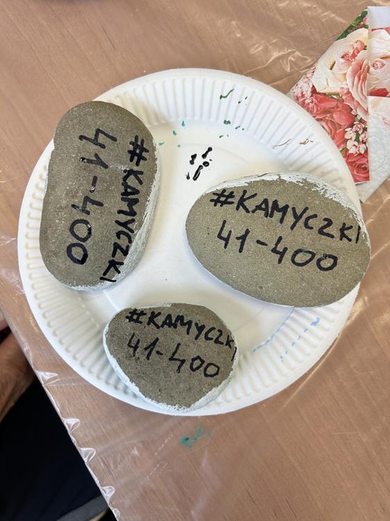 Warsztaty rozpoczęły się instruktażem, w którym uczestnicy dowiedzieli się, jak przygotować kamyczki do malowania, jakiego materiału używać oraz jak je zabezpieczyć przed działaniem warunków atmosferycznych. Po krótkim wprowadzeniu, seniorzy przystąpili do tworzenia swoich wyjątkowych kamyków. Wśród powstałych dzieł znalazły się kamyczki z kwiatami, biedronkami, krajobrazami, a nawet czterolistną koniczynką szczęścia. Każdy kamień został odpowiednio oznaczony kodem pocztowym i hasztagiem, a następnie polakierowany, by mogły trwać w dobrej kondycji na różnych trasach.