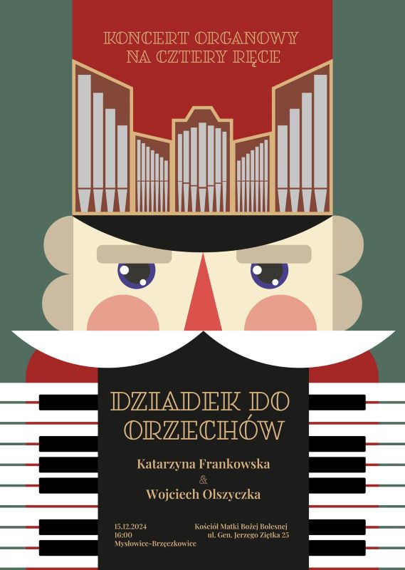 Podczas koncertu będziemy mieli przyjemność usłyszeć transkrypcję organową jednej z najsłynniejszych świątecznych suit – „Dziadek do orzechów” Piotra Czajkowskiego. W opracowaniu na cztery ręce usłyszymy takie utwory jak „Marsz”, „Taniec wróżki cukrowej”, „Walc kwiatów” oraz inne charakterystyczne fragmenty tej klasycznej kompozycji.