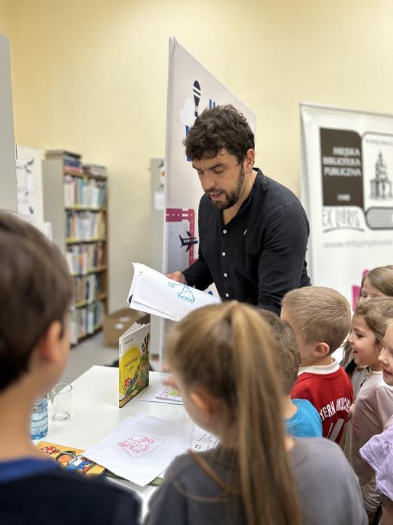 Zajęcia poprowadził Mateusz Świstak – znany jako Gadający Świstak / Baśnie na warsztacie: opowiadacz, pisarz, edukator i podcaster, od lat współpracujący z Instytutem Książki w kampanii „Mała książka – wielki człowiek”.