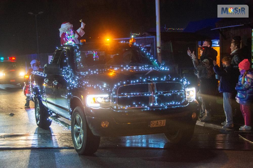 Na czele przejazdu jechał Mikołaj w swoim pojeździe, a tuż za nim poruszały się ozdobione samochody służb i miejskich jednostek. Migające światełka, dekoracje i świąteczne akcenty przyciągały uwagę mieszkańców, którzy z chodników i okien obserwowali kolorowy korowód.