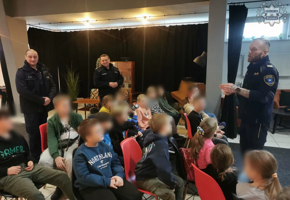Dzielnicowi Komendy Miejskiej Policji w Mysłowicach oraz funkcjonariusze Straży Miejskiej odwiedzili dzieci spędzające ferie w Miejskim Ośrodku Kultury w Mysłowicach. Podczas spotkania przypomnieli zasady bezpieczeństwa w ruchu drogowym oraz podkreślili, jak unikać zagrożeń podczas zimowych zabaw.