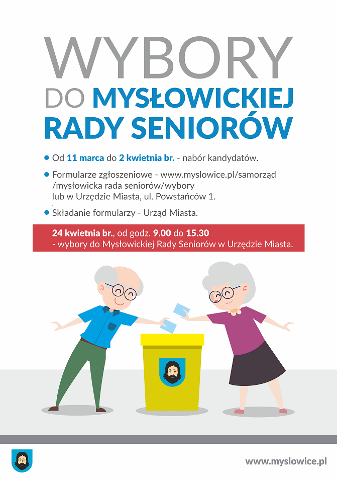 Zbliżają się wybory do Mysłowickiej Rady Seniorów II kadencji. Prezydent Mysłowic Dariusz Wójtowicz zarządził nabór kandydatów do Rady od 11 marca do 2 kwietnia br. Wybory do MRS odbędą się 24 kwietnia od godz. 9.00 do 15.30 w Urzędzie Miasta.