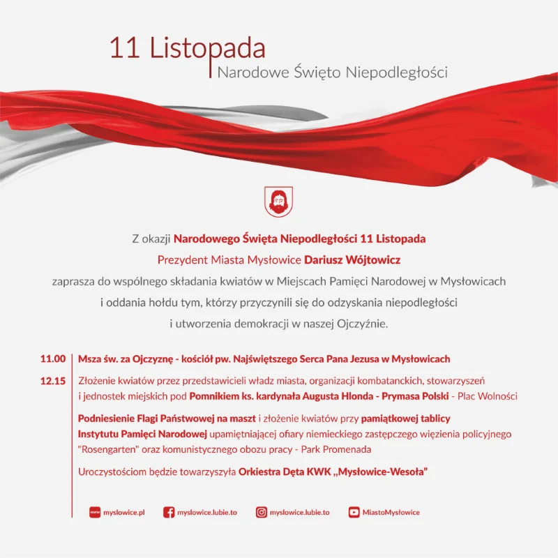 Program obchodów Święta Niepodległości w Mysłowicach