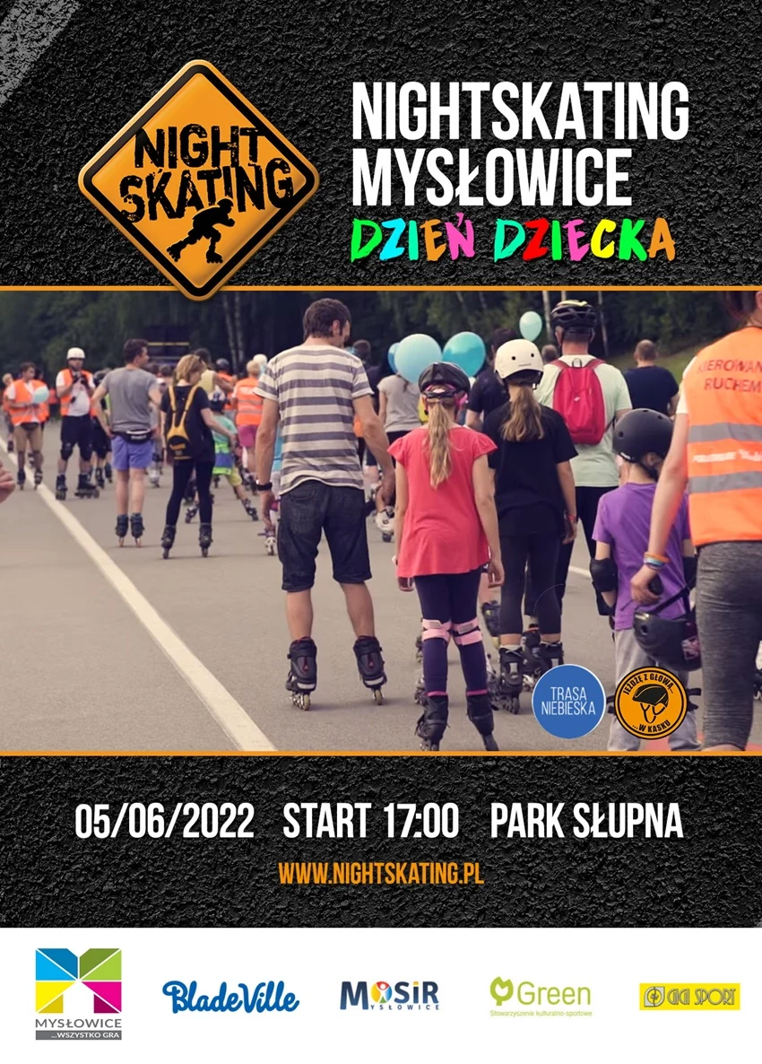 5 czerwca Stowarzyszenie Kulturalno-Sportowe „Green” wraz z Miasto Mysłowice oraz Miejski Ośrodek Sportu i Rekreacji w Mysłowicach zapraszają na wyjątkowy Nightskating połączony z Dniem Dziecka!