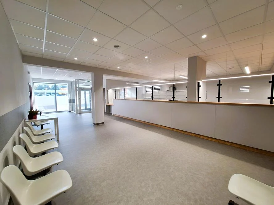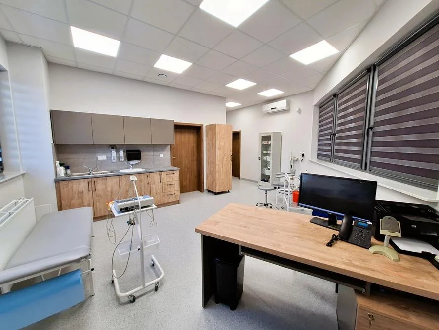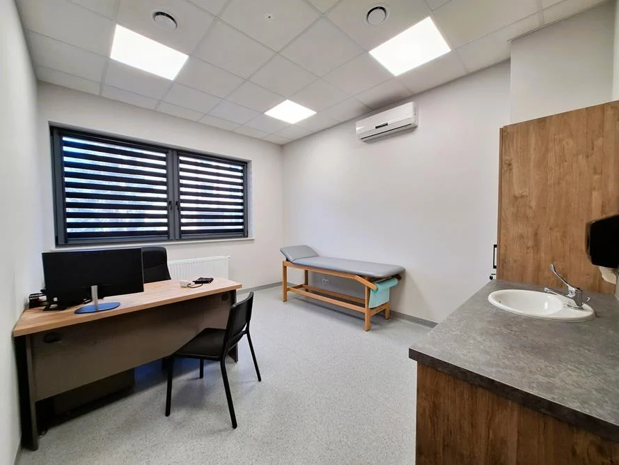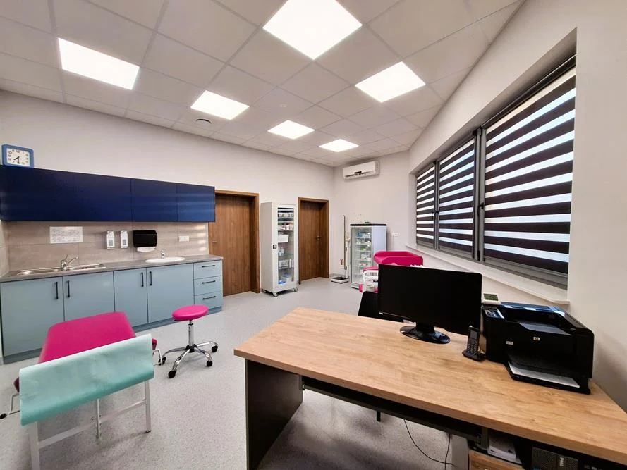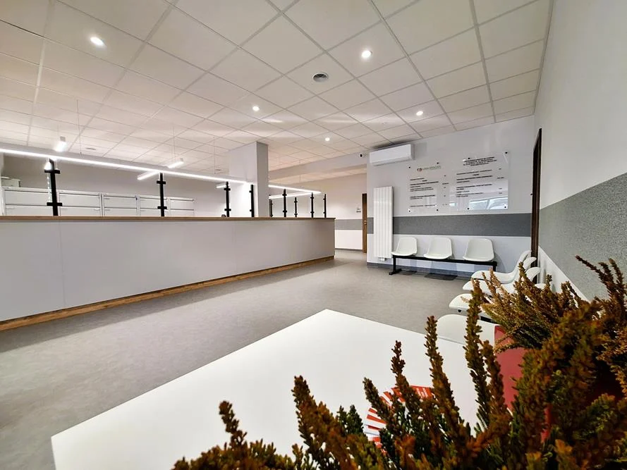 W nowoczesnej przychodni zainstalowano cztery stanowiska rejestracyjne zamiast dwóch, co pozwala na sprawniejszą obsługę pacjentów. Wydzielona została także komfortowa część położniczo-ginekologiczna, a cały układ wnętrz został zoptymalizowany pod kątem wygody pacjentów. Odświeżona elewacja, duże przeszklenia, naturalne światło, nowoczesne meble i wyposażenie medyczne sprawiają, że przestrzeń w przychodni jest nie tylko funkcjonalna, ale także przyjazna i estetyczna.