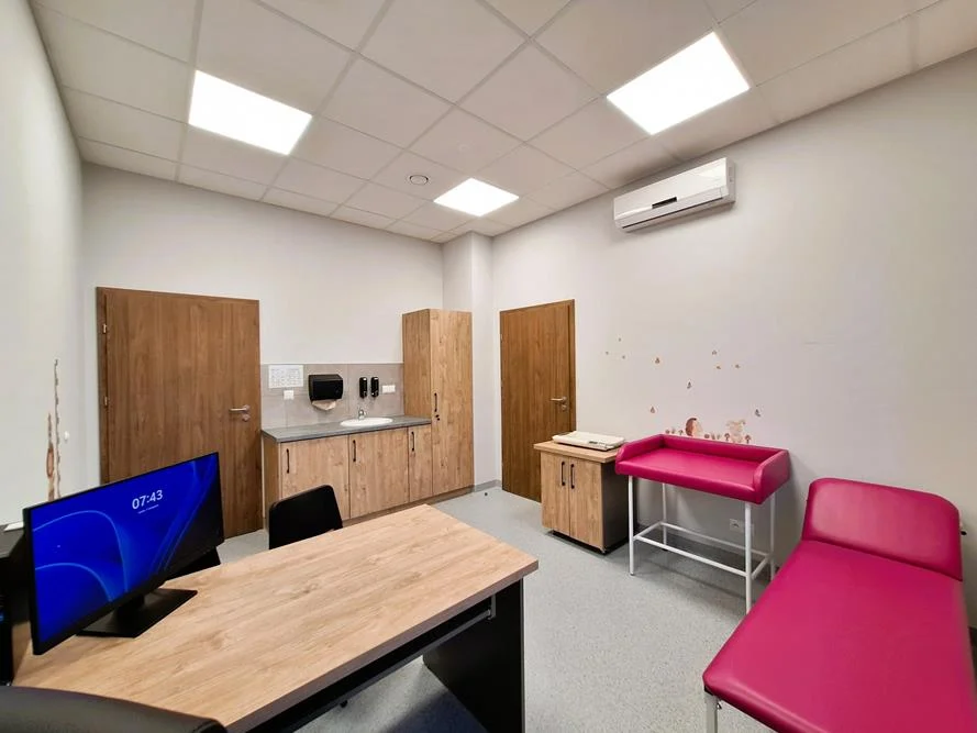 Przygotowane zmiany dotyczą również podziału przestrzeni. POZ dla dorosłych znajduje się na parterze, natomiast POZ dla dzieci – na pierwszym piętrze, z łatwym dostępem windą. Dzięki temu najmłodsze osoby mają osobną przestrzeń, co zwiększa ich komfort i bezpieczeństwo podczas wizyt. Dodatkowo, wyodrębnione zostały dwie strefy pacjenta – osobne poczekalnie dla dzieci i dorosłych oraz dodatkowy gabinet zabiegowy dla najmłodszych.