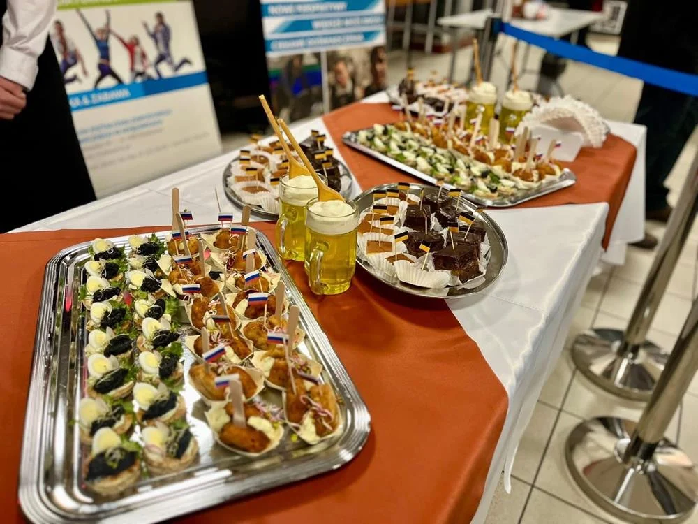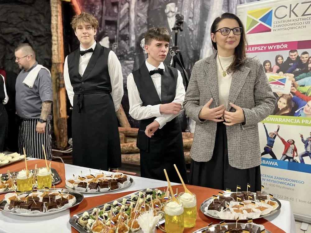 Jednym z elementów spotkania był poczęstunek inspirowany kuchnią trzech cesarstw, przygotowany przez uczniów i nauczycieli Centrum Kształcenia Zawodowego i Ustawicznego w Mysłowicach. Regionalne specjały spotkały się z dużym zainteresowaniem uczestników, którzy chętnie degustowali przygotowane potrawy.