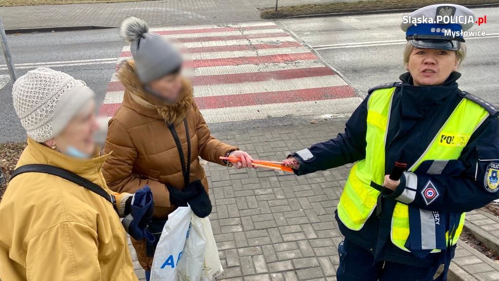 Policjanci prowadzili również działania profilaktyczne skierowane do pieszych, rozdając odblaskowe torby oraz opaski, by poprawić ich bezpieczeństwo po zmroku.