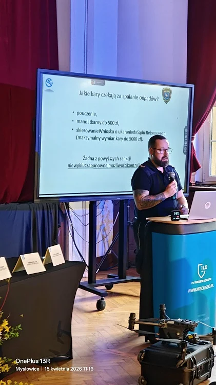 Podczas wydarzenia przedstawiono także konkretne działania prowadzone przez miasto. Przedstawiciel mysłowickiej Straży Miejskiej zaprezentował specjalistycznego drona, wykorzystywanego do namierzania źródeł nielegalnego spalania odpadów.