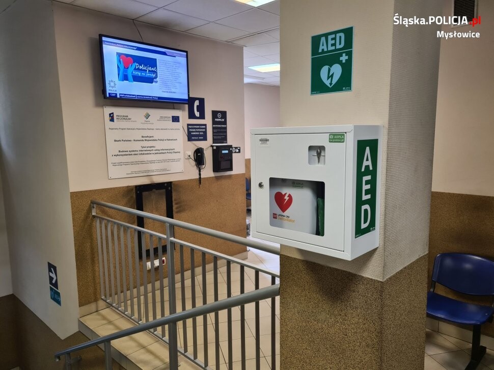 Od przedwczoraj w budynku Komendy Miejskiej Policji w Mysłowicach, w poczekalni dla interesantów, znajduję się urządzenie AED.
