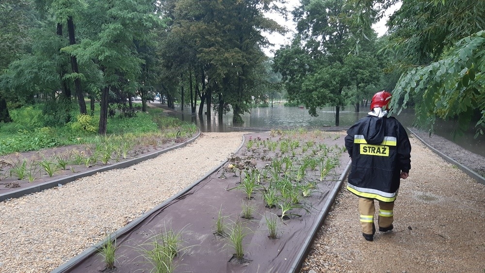 Po przyjęciu zgłoszenia o przelewającej się przez wał Przemszy działania Mysłowickich Strażaków wspierali Strażacy z Dąbrowy Górniczej i Katowic. Ułożono worki z piaskiem w najniższym miejscu wału, przez który Przemsza przelewała się i zagrażała budynkom mieszkalnym przy ul. Kaczej oraz Kołłątaja i zalewała garaże przy ul. Kaczej. Na chwilę obecną mamy prawie 90 obsłużonych zgłoszeń i dalej pompujemy wodę z zalanych piwnic oraz zalanych dróg w rejonie ul. Plebiscytowej. W walce ze skutkami nawałnicy walczyło 15 zastępów i 40 strażaków nie tylko Państwowej Straży Pożarnej, ale również Zakładowej Straży Pożarnej i Ochotniczej Straży Pożarnej.
