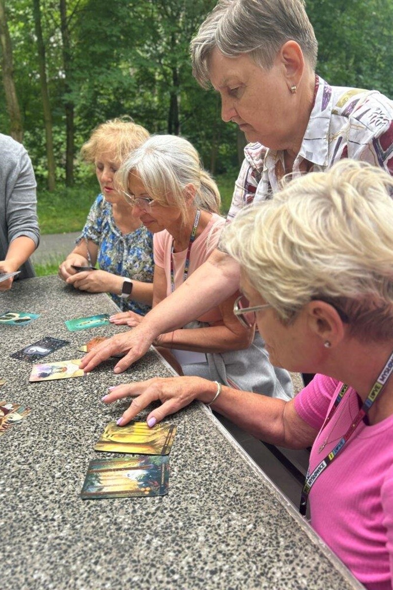 Podczas warsztatów w kompleksie Promenada seniorki oprócz poznania zasad kąpieli leśnych i lasoterapii miały też okazję „popracować” zmysłami – wsłuchiwały się w dźwięki natury, wąchały polne kwiaty i ziemię, dotykały drzew i leśnych darów, wsłuchiwały się w swoje wspomnienia i skojarzenia dotyczące natury. Swoje spostrzeżenia, emocje i doświadczenia, jakich były świadkami podczas obcowania z naturą, zapisywały w swoich Dziennikach wypraw. A emocji i wzruszeń było naprawdę sporo. Karty Mocy Lasu „Leśne Medytacje” urozmaiciły spacer pośród natury, niezwykle poruszając wyobraźnię uczestników i zachęcając do eksplorowania nie tylko otoczenia, ale przede wszystkim samego siebie.