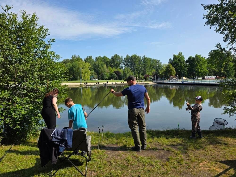 Nie zabrakło również sportowych emocji! Na terenie parku odbyły się zawody wędkarskie dla dzieci, które przyciągnęły małych miłośników łowienia ryb i ich bliskich.