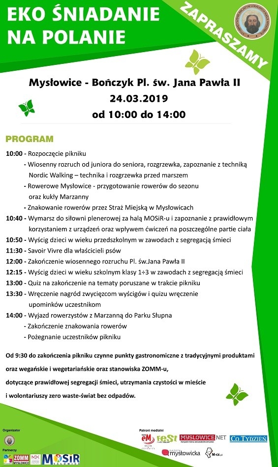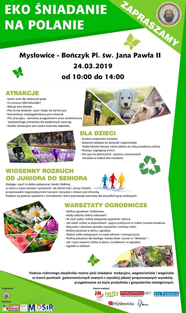 "Eko Śniadanie na Polanie" to projekt popularyzujący zachowania proekologiczne i zdrowy tryb życia. Równocześnie integrując mieszkańców Mysłowic i propagujący wolontariat.