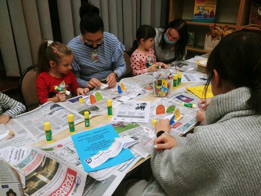W ramach projektu Kierunek-EkoSfera w bibliotecznej filii nr 11 zorganizowano dla małych dzieci i rodziców zabawę ekologiczną pod hasłem "Ekoludkowe zabawy gazetowe z Myszką Miki".