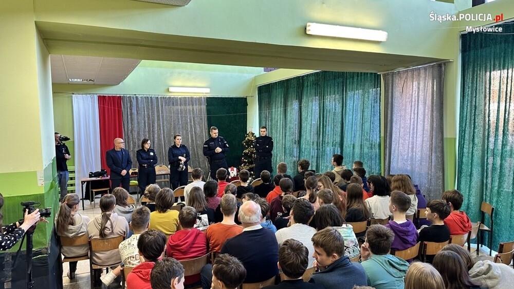 Policyjni profilaktycy wraz z funkcjonariuszami mysłowickiej Straży Miejskiej odwiedzili dziś Szkołę Podstawową nr 4 w Mysłowicach. Spotkanie z uczniami było także podsumowaniem akcji profilaktycznej "Powiedz NIE!". W czasie spotkania mundurowi poruszyli kwestie uzależnień od alkoholu, narkotyków i innych niebezpiecznych substancji. Nie zabrakło również zagadnień z zakresu cyberbezpieczeństwa.