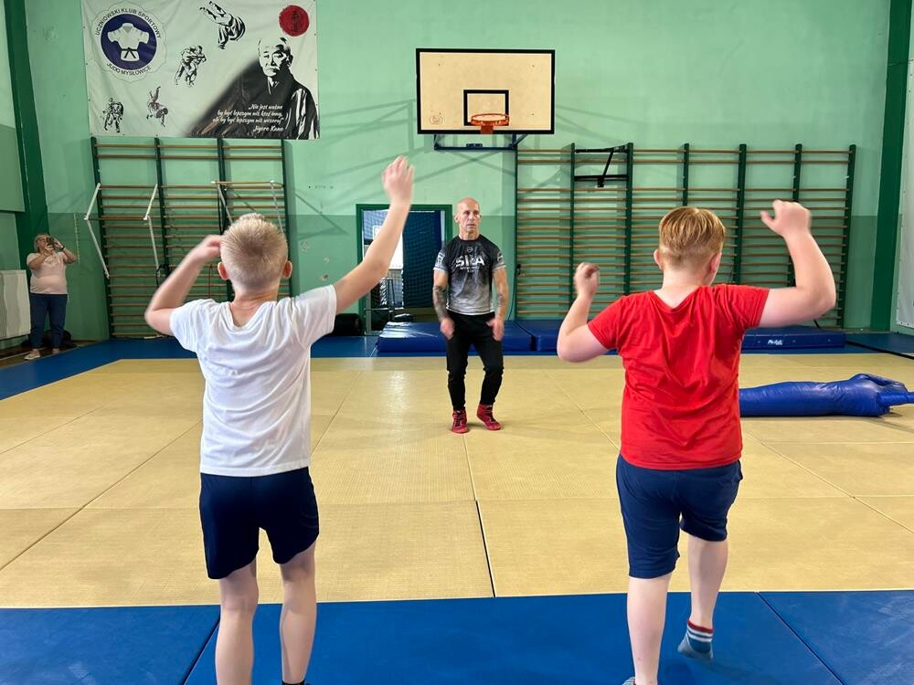 Następnie odbyła się pouczająca pogadanka ze strażnikami miejskimi, którzy w przystępny sposób opowiedzieli o zagrożeniach, zasadach zachowania w trudnych sytuacjach i tym, jak dbać o swoje bezpieczeństwo w codziennym życiu.