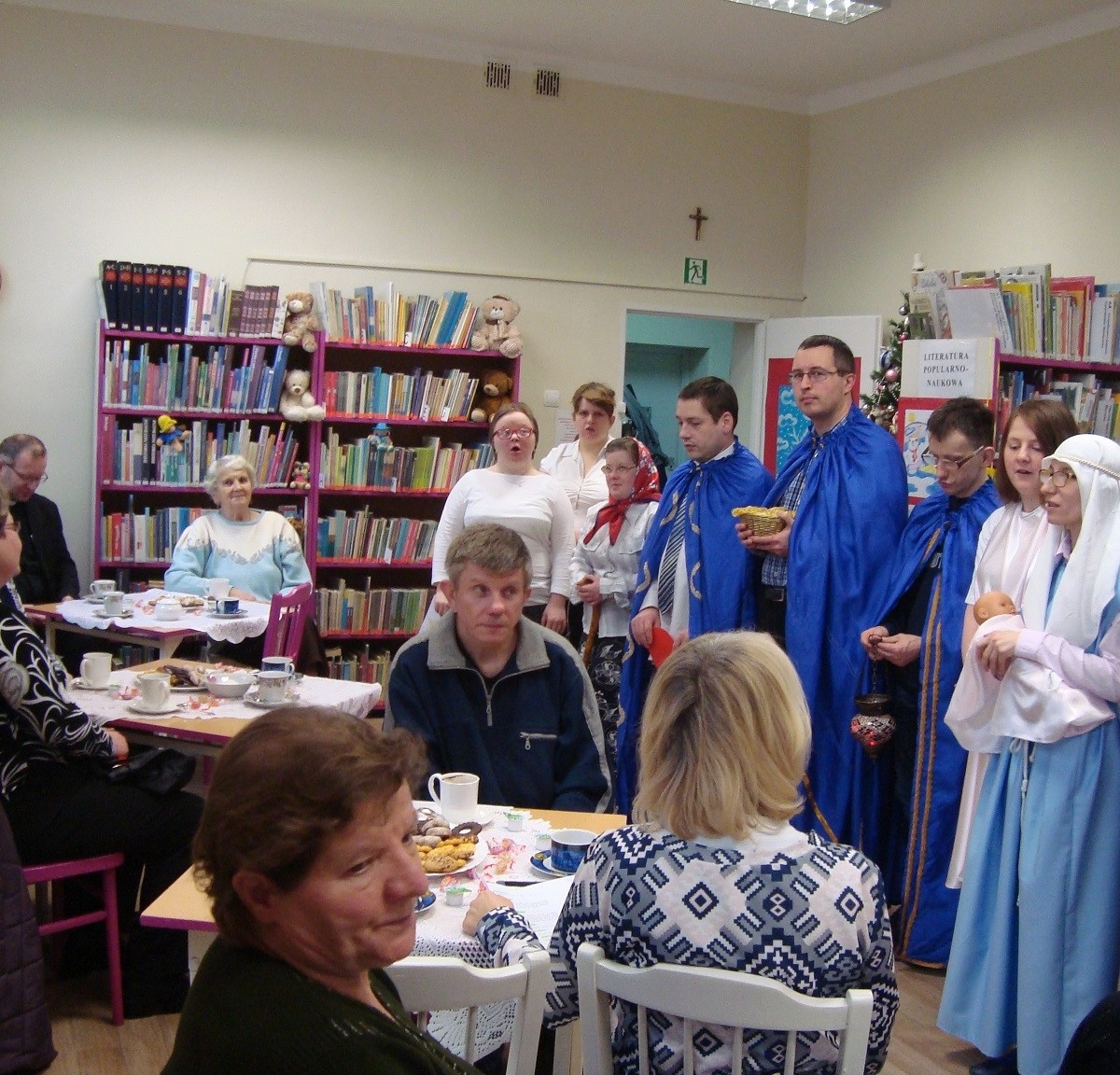 Tradycją brzęczkowickiej biblioteki są spotkania jasełkowe, podczas których podopieczni Warsztatów Terapii Zajęciowej przy Stowarzyszeniu Pomocy Dzieciom Niepełnosprawnym „Radość” wcielają się w postaci biblijne i z ogromną radością prezentują jasełka. W tym roku wśród zaproszonych gości był Proboszcz Parafii Matki Boskiej Bolesnej w Brzęczkowicach – ks. Grzegorz Wita, a także członkinie Polskiego Związku Niewidomych, podopieczni Domu Dziennego Pobytu „Złota Jesień” oraz miłośnicy brzęczkowickiej biblioteki.