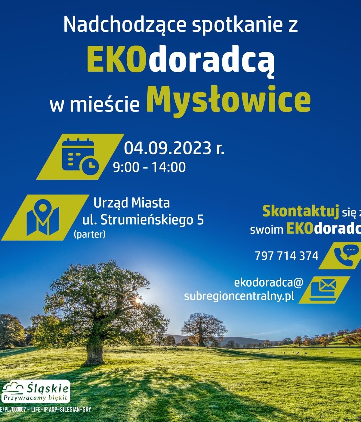 Urząd Miasta zaprasza na nadchodzące spotkanie z ekodoradcą, które odbędzie się 4 września 2023 r. w godzinach 9:00 – 14:00. Ekodoradca będzie dostępny dla mieszkańców miasta na parterze budynku Urzędu Miasta Mysłowice przy ul. Strumieńskiego 5.