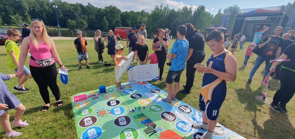 Strażnicy przygotowali stanowisko z eko gadżetami oraz z wielkoformatową grą o tematyce segregacji, w której pionkami osobiście były dzieci. Dzieci odpowiadały na pytania w tematyce prawidłowego sortowania odpadów, dzięki czemu mogły dążyć do zwycięstwa w grze. Ponadto, dla najmłodszych, przygotowany był kącik z kolorowankami i łamigłówkami dotyczącymi segregacji.