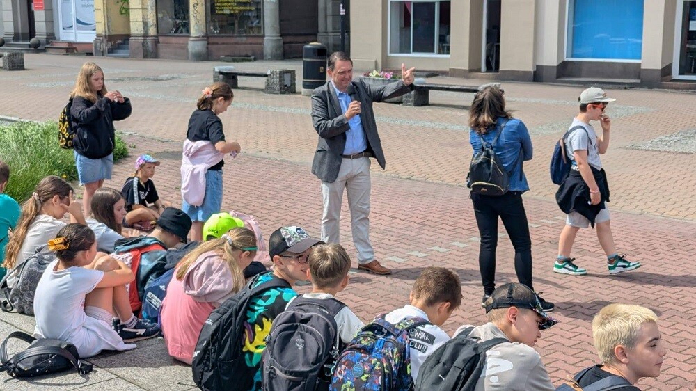 Uczniowie poznali również dziedzictwo innych kultur obecnych w Mysłowicach – Żydów i ewangelików, a także historię emigracji zamorskiej. Duże zainteresowanie wzbudziły opowieści o lokalnych klubach sportowych oraz nietypowa bliskość walcowni blachy i ratusza, będąca przykładem współistnienia przemysłu i instytucji miejskich.