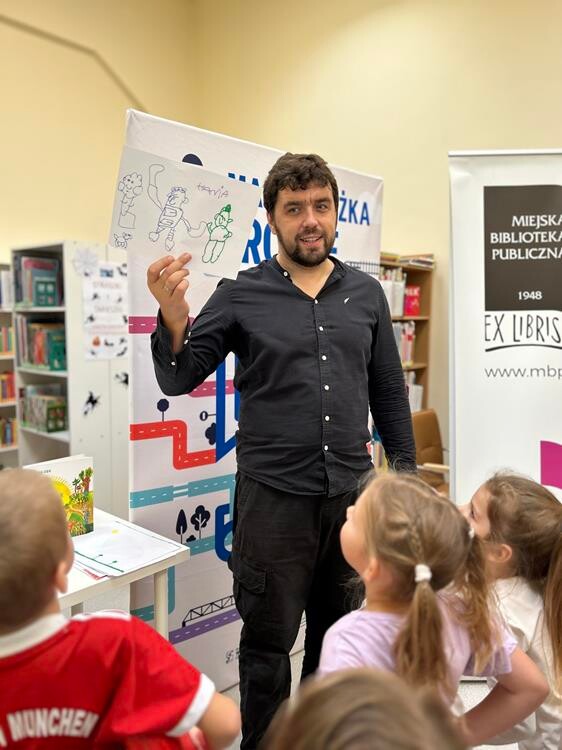 Zajęcia poprowadził Mateusz Świstak – znany jako Gadający Świstak / Baśnie na warsztacie: opowiadacz, pisarz, edukator i podcaster, od lat współpracujący z Instytutem Książki w kampanii „Mała książka – wielki człowiek”.