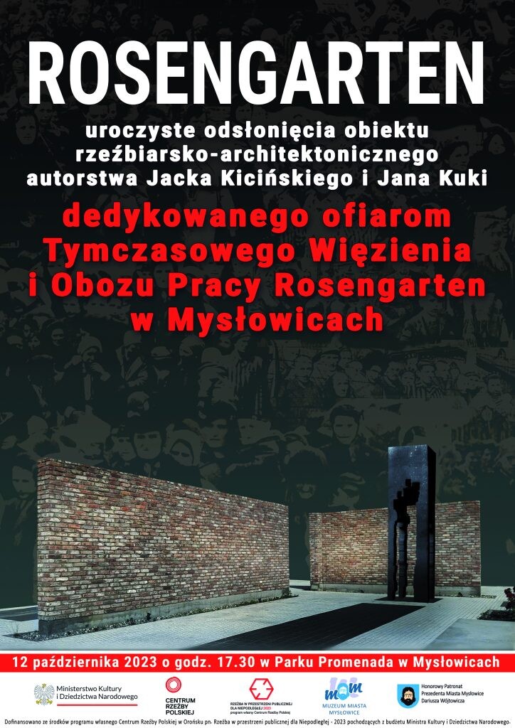 Urząd Miasta Mysłowice zaprasza na uroczystość odsłonięcia obiektu rzeźbiarsko – architektonicznego dedykowanego ofiarom Tymczasowego Więzienia i Obozu Pracy Rosengarten w Mysłowicach autorstwa Jacka Kicińskiego i Jana Kuki.