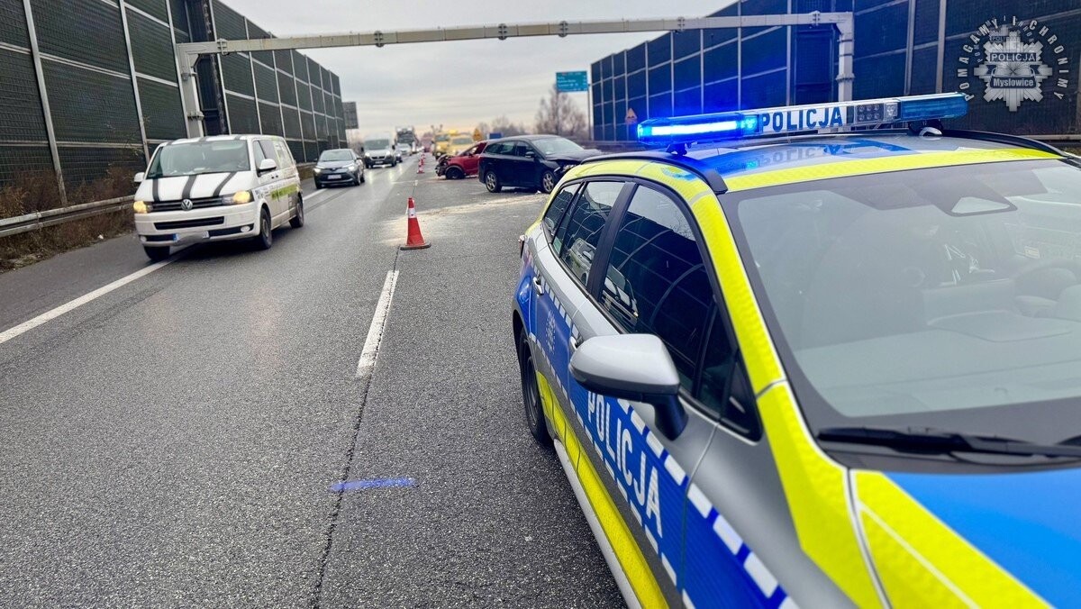 Do najgroźniejszych zdarzeń doszło około godziny 5.30 na drodze ekspresowej S1 w kierunku Dąbrowy Górniczej. Przed zjazdem na A4 kierujący citroenem uderzył w bariery, po czym został uderzony przez kierującego fordem. Kierujący zostali przetransportowani do szpitali, jednak ich obrażenia okazały się być niegroźne. Po opuszczeniu szpitala zostali oni ukarani mandatami karnymi.
