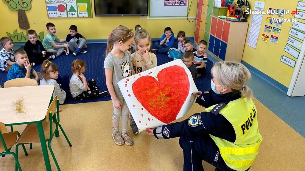 Piątkowego poranka przedszkolaków z Przedszkola nr. 8 w Mysłowicach odwiedzili policjanci, którzy odebrali od dzieci wykonane przez grupę Tygrysków serduszka dla babć i dziadków. Wraz z serduszkami przedszkolaki przekazały seniorom serdeczne życzenia. Mundurowi z mysłowickiej drogówki pełniąc służbę na ulicach naszego miasta, rozdawali te serduszka napotkanym babciom i dziadkom, przekazując także życzenia od dzieci.