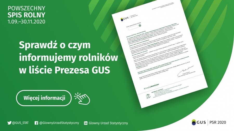 Więcej informacji na temat Powszechnego Spisu Rolnego znajdziecie Państwo na stronie internetowej GUS.