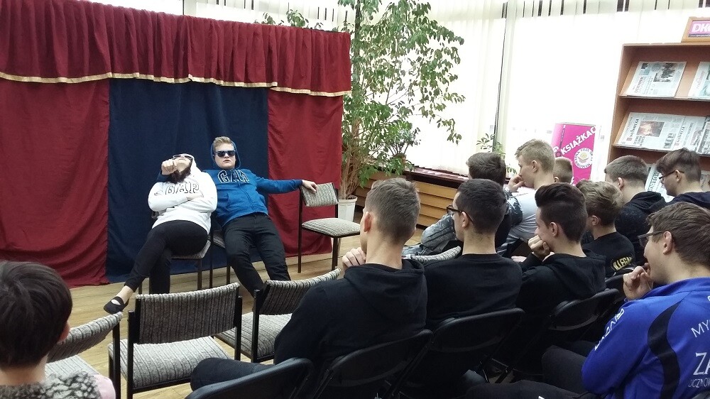 Dnia 4 grudnia w Filii nr 11 zorganizowano dla młodzieży z mysłowickich szkół: I LO im T. Kościuszki oraz Centrum Kształcenia Zawodowego i Ustawicznego spektakl profilaktyczny „Laboratorium życia” w wykonaniu aktorów Teatru Edukacji i Profilaktyki MASKA z Krakowa.