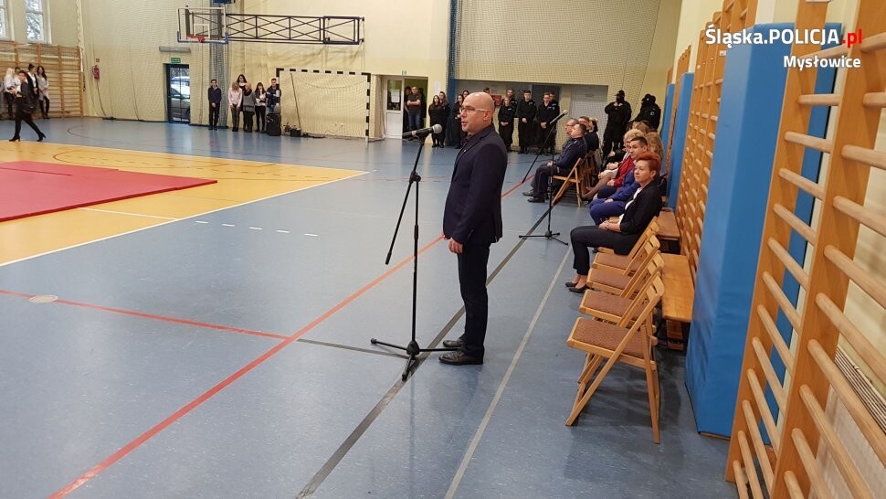 Niezwykle ważny dzień w życiu licealistów z klas pierwszych o profilu policyjnym miał miejsce dzisiaj w II Liceum Ogólnokształcącym im. Powstańców Śląskich w Mysłowicach. W tych doniosłych chwilach uczniowie wiążący swoje dalsze życiowe plany ze służbą mundurową złożyli ślubowanie. W uroczystym apelu uczestniczyli przedstawicieli władz samorządowych oraz współpracujących ze szkołą instytucji i urzędów. Po części oficjalnej, uzdolniona młodzież zaprezentowała zgromadzonym gościom swój program artystyczny. Były patriotyczne wiersze i piosenki. Na zakończenie funkcjonariusze służb mundurowych wykonali pokaz technik interwencyjnych i samoobrony. Na uroczystym ślubowaniu nie zabrakło przedstawicieli mysłowickiej policji, Komendanta Miejskiego Policji w Mysłowicach reprezentowali Zastępca Naczelnika Wydziału Prewencji KMP w Mysłowicach asp. sztab. Marcin Kuźma oraz Oficer Prasowy Komendy Miejskiej Policji w Mysłowicach sierż. Damian Sokołowski.