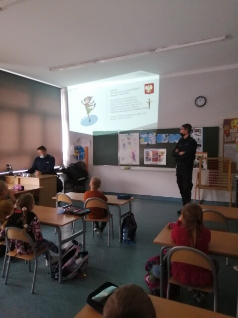 - Dzielnicowy asp. sztab. Grzegorz Zaremba oraz rzecznik prasowy sierż. sztab. Łukasz Paździora, w trosce o bezpieczeństwo uczniów klas młodszych, przeprowadzili prelekcję przypominającą zasady właściwego wypoczynku zimowego.