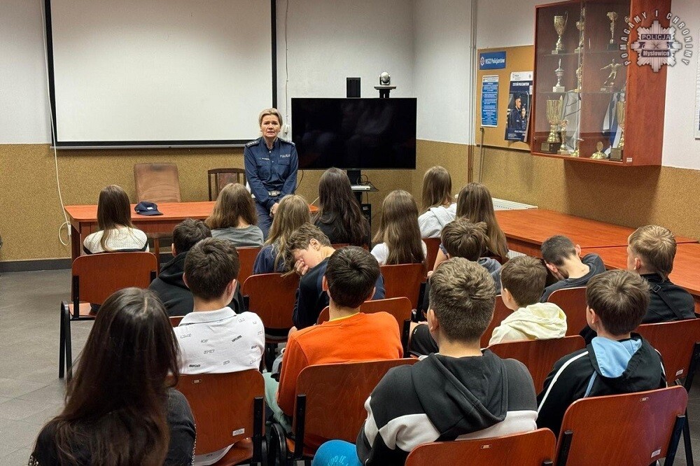 Podczas spotkania dzieci poznały m.in. działalność wydziałów ruchu drogowego i patrolowego, a także dowiedziały się, czym zajmuje się oficer prasowy policji. Nie zabrakło również elementu edukacyjnego – policjantka przypomniała uczniom zasady bezpieczeństwa w ruchu drogowym, ze szczególnym uwzględnieniem poruszania się pieszo, rowerem i hulajnogą elektryczną.
