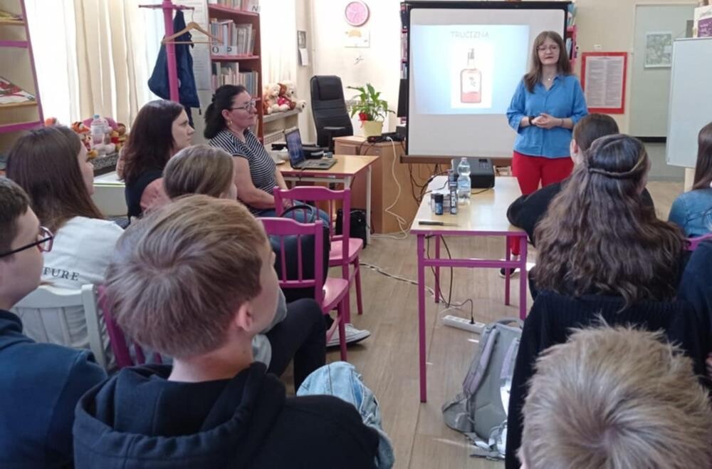 Podczas spotkania omawiano zagrożenia wynikające z używania substancji psychoaktywnych i podkreślano, jak ważne są zdrowe relacje, świadomość i umiejętność podejmowania mądrych decyzji. Uczniowie aktywnie uczestniczyli w dyskusji, dzielili się refleksjami i poszukiwali wspólnie odpowiedzi na trudne pytania.