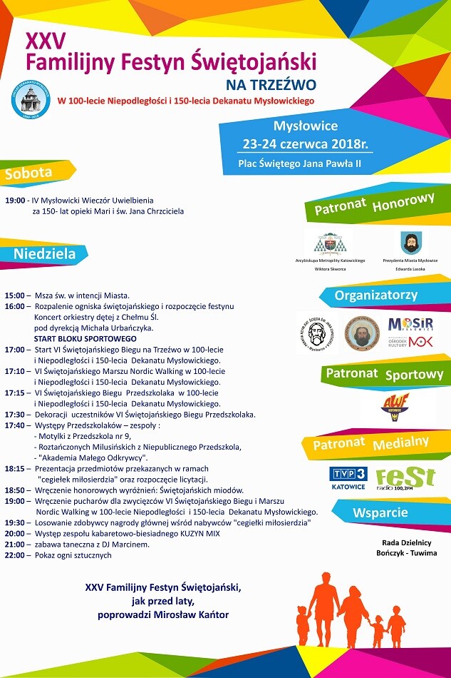 Zapraszamy na XXV Familijny Festyn Świętojański – Na Trzeźwo w 100-lecie Niepodległości i 150-lecia Dekanatu Mysłowickiego w dniu 24 czerwca 2018r.