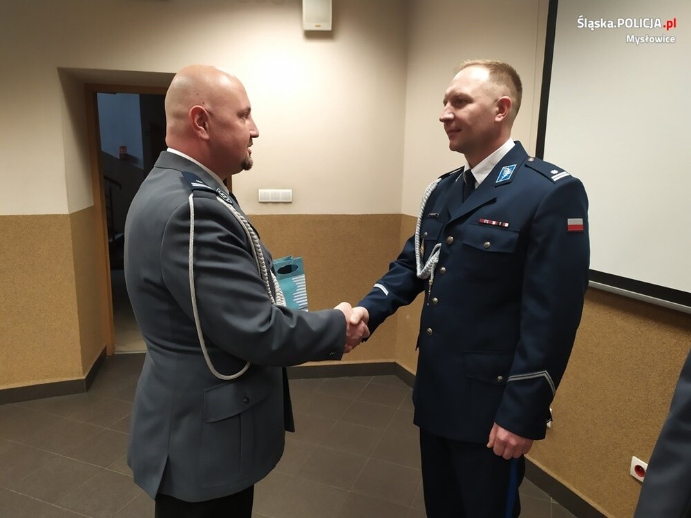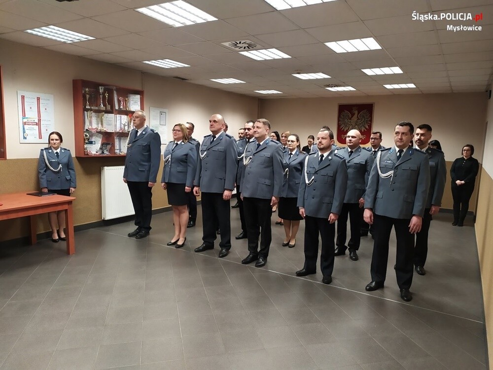 Jednocześnie przywitany został nowy, pełniący obowiązki Komendanta Miejskiego Policji w Mysłowicach podinsp. Jarosław Bąk, który dotychczas był I Zastępcą Komendanta Miejskiego Policji w Zabrzu.