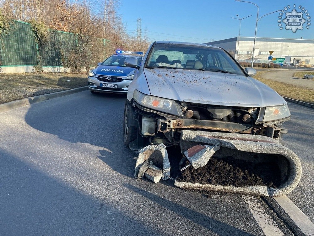 Dziś rano, około godziny 5:10, na ulicy Kosztowskiej w Mysłowicach doszło do kolizji drogowej z udziałem 37-letniego kierowcy hondy. Jak wynika ze wstępnych ustaleń, mężczyzna przejechał przez wyspę ronda, uderzył w kwietnik, a następnie w inny pojazd – kię, jadącą z naprzeciwka.