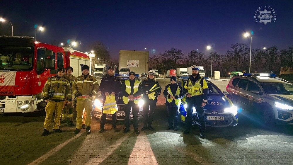 Wczoraj po zmroku policjanci z mysłowickiej drogówki, strażacy z PSP w Mysłowicach oraz funkcjonariusze Straży Miejskiej przeprowadzili wspólną akcję "Świećmy Razem!". Celem działań było poprawienie widoczności pieszych po zmroku. Mundurowi rozdawali napotkanym przechodniom elementy odblaskowe, które w okresie zimowym mogą znacząco polepszyć bezpieczeństwo na drogach.