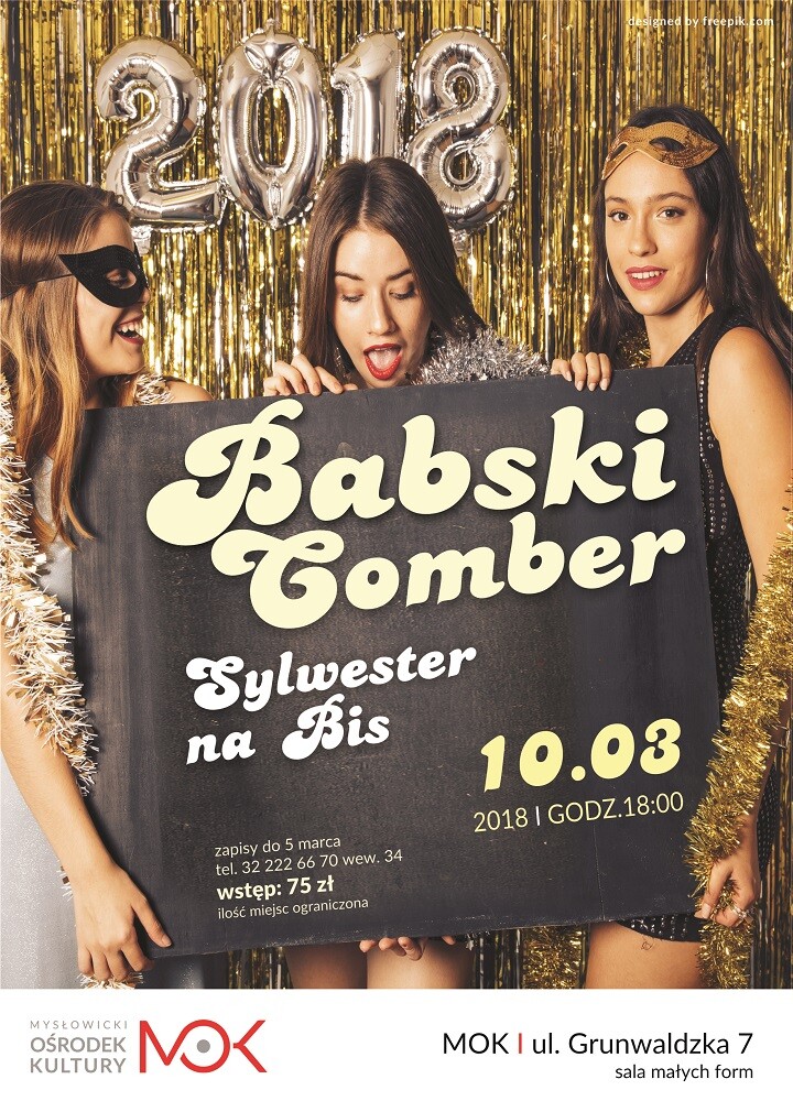 Sylwestrowy Babski Comber odbędzie się 10 marca o godzinie 18:00 w Mysłowickim Ośrodku Kultury przy ul. Grunwaldzkiej 7. Koszt uczestnictwa w imprezie to 75 zł. W cenie biletu ciepły posiłek, zimna płyta, przekąski, napoje oraz, przede wszystkim, doskonała zabawa. Bilety można nabyć w kasie Mysłowickiego Ośrodka Kultury. Ilość miejsc ograniczona!