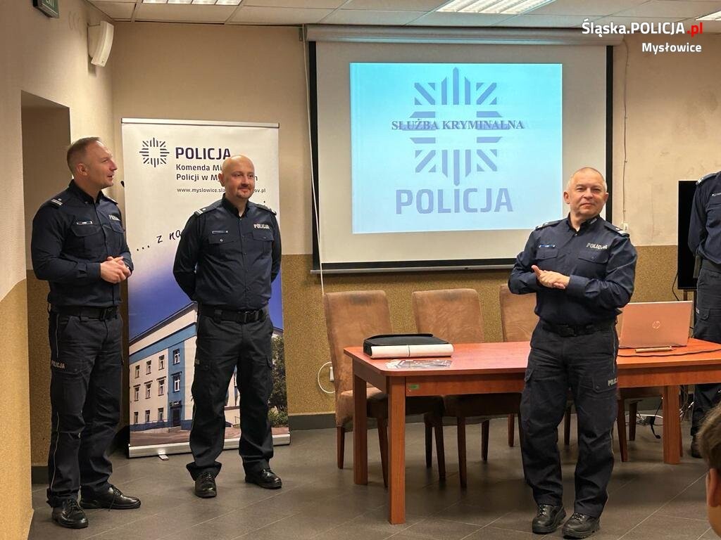 Naczelnik Wydziału Prewencji podinsp. Piotr Ślęzak zaprezentował działania mysłowickich policjantów w roku 2022 i omówił poziom bezpieczeństwa w mieście.