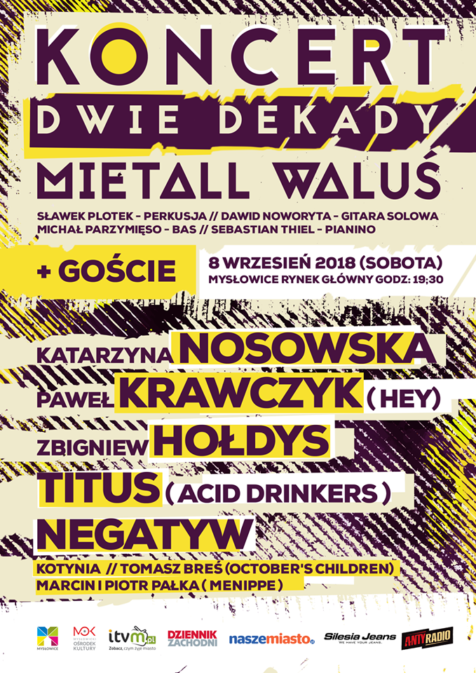 Koncert rozpocznie się o 19:30 na mysłowickim rynku i potrwa ponad dwie godziny. Płyta Dwie dekady zamyka pewien etap działalności Mietalla Walusia. W przyszłym roku ukaże się nowy, premierowy, solowy materiał muzyka, którego tytuł roboczy brzmi „OKSI”